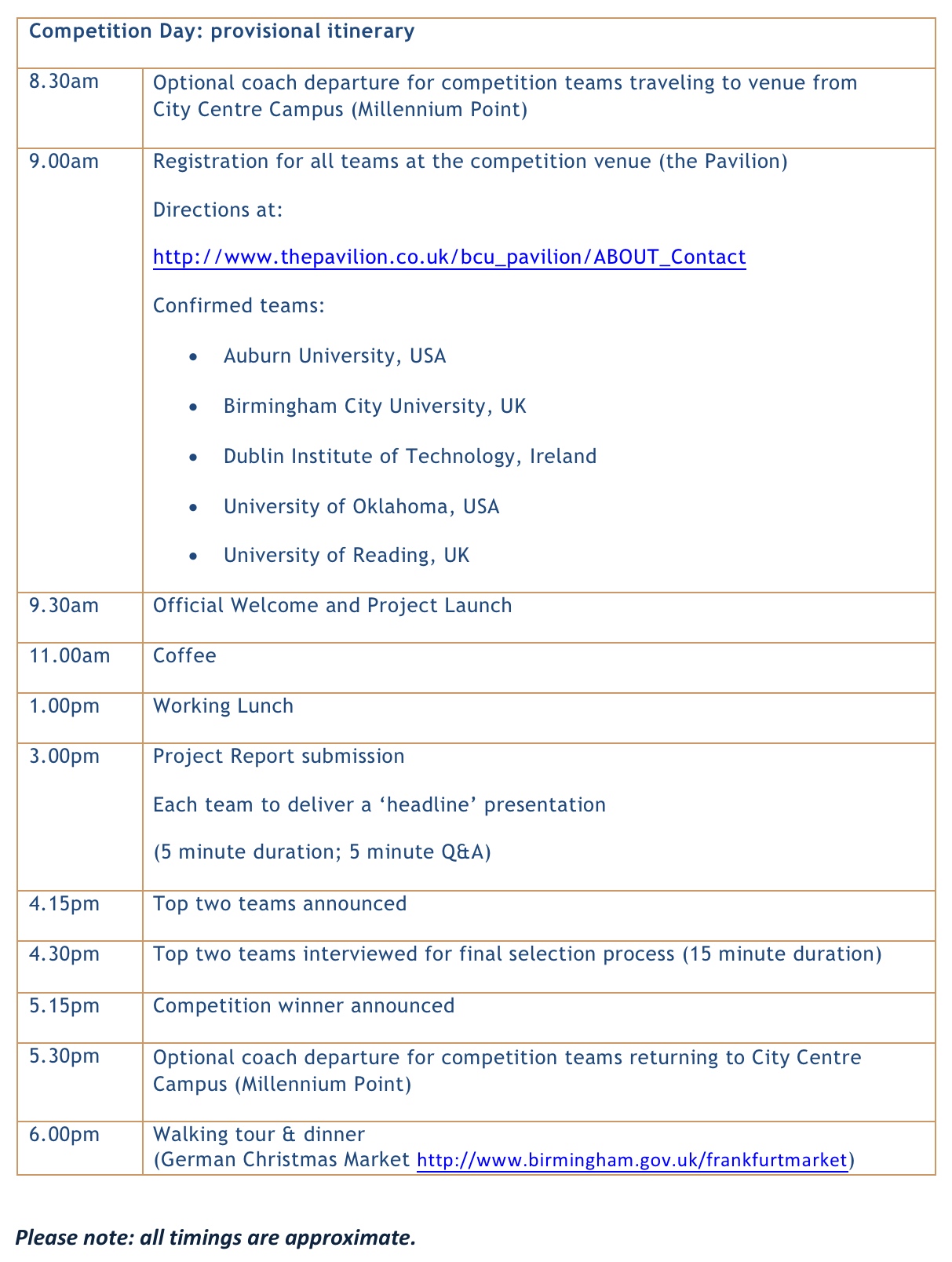The Panel were impressed with the work of all teams, but at the semi-final stage Birmingham City University and the University of Reading were the unlucky ones to miss out.